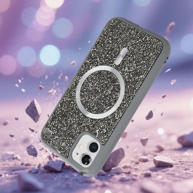 Cadorabo Glitter-fodral, kompatibelt med iPhone 11, erbjuder en perfekt kombination av lyx och skydd. Den glittrande Bling-Diamant-ytan ger ett stilfullt utseende, medan den robusta konstruktionen skyddar din smartphone mot repor, stötar och slitage. Tack vare den inbyggda magnetkraften är fodralet kompatibelt med MagSafe-tillbehör, så att trådlös laddning fungerar utan problem.