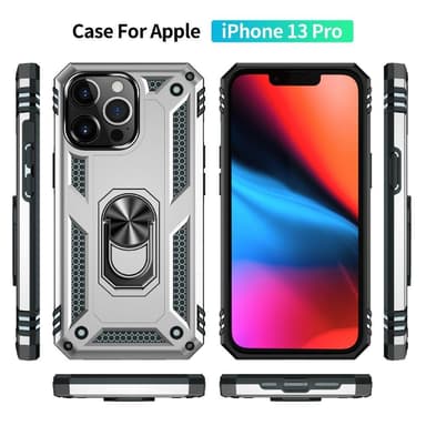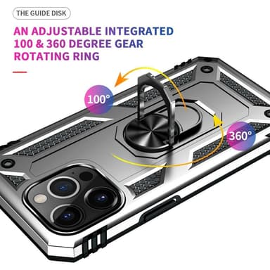 Militärklass PC TPU Stötsäkert hybridfodral för iPhone 13 Pro 6.1 tum med Rotary Ring Bilfäste Kickstand - Silver