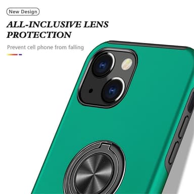 Hybridtelefonfodral heltäckande med ringformad kickstandsdesign för iPhone 14 - Grön