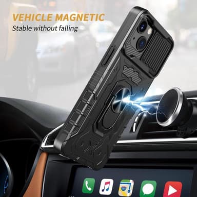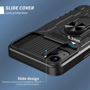 Slide Camera Protection PC + TPU-fodral för iPhone 14, Kickstand heltäckande telefonskal med skärmfilm av härdat glas - svart
