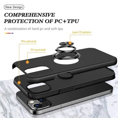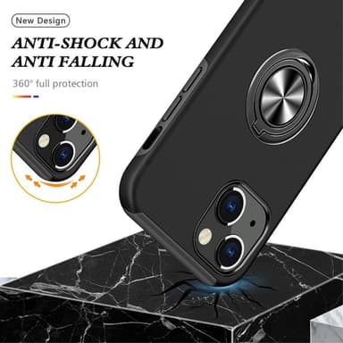 Hybridtelefonfodral heltäckande med ringformad kickstandsdesign för iPhone 14 Plus - Svart