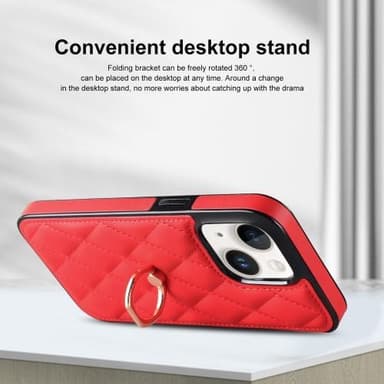 För iPhone 14 telefonfodral PU-läder + TPU-tryckt Rhombus Grid Mönster Bakstycke med Ring Stativ - Röd