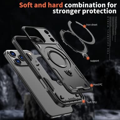 Skydda din smartphone med detta robusta 360°-skyddsfodral. Skyddsfodralet är kompatibelt med iPhone 17 PRO MAX. Den genomtänkta designen kombinerar stöttåligt skydd runt om med praktisk funktionalitet. Tack vare den integrerade ringhållaren med 360°-rotation har du alltid säker grepp om din mobil. De precisa utskärningarna ger obegränsad åtkomst till alla anslutningar och funktioner.