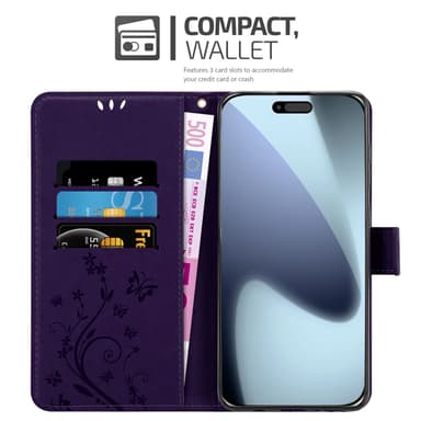 DESIGN: Det här blommiga konstläderFodral i bokstil för iPhone 17 PRO har en praktisk ståfunktion och kortplatser. Det härliga mönstret med blommor och fjärilar förskönar vilken mobiltelefon som helst!