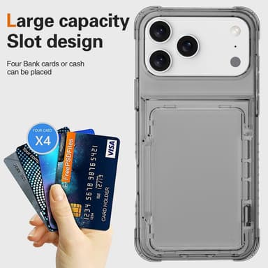 Detta praktiska mobilskal är kompatibelt med iPhone 17 PRO och kombinerar elegant design med smart funktionalitet. Tillverkat av högkvalitativt TPU-material skyddar det din smartphone pålitligt mot stötar, repor och slitage. Det speciella med detta fodral är det integrerade, uppfällbara kortfacket på baksidan. Så har du alltid dina viktigaste kort – som bankkort, körkort eller ID-kort – säkert och lättillgängligt utan att behöva ta med dig en extra plånbok.
