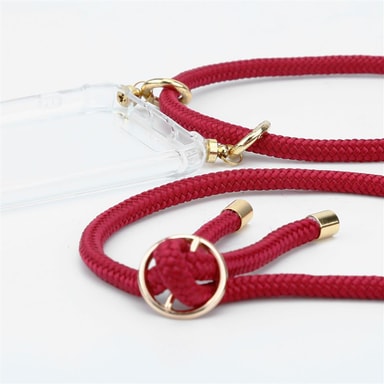 SKYDD: TPU-silikonfodralet skyddar mobilens kanter och hörn. De högkvalitativa karbinhakarna håller telefonen väl fast på det rivningsbeständiga repet. Fodralet är robust och hålls på plats med tryckknappar.