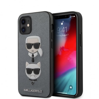 • Karl Lagerfeld iPhone 12 Mini Skal Saffiano Karl & Choupette Silver