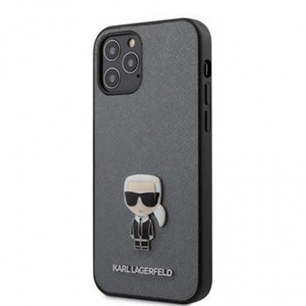 • Karl Lagerfeld iPhone 12 Pro Max Skal Saffiano Iconic Cover Silver
