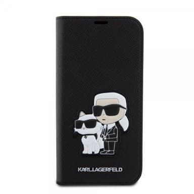 Karl Lagerfeld iPhone 15 Fodral NFT Karl & Choupette Patch Saffiano Svart