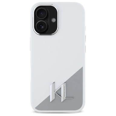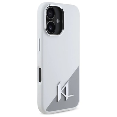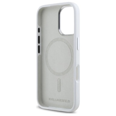 Karl Lagerfeld iPhone 16 Mobilskal MagSafe Silikon Shadow Metal Initial - Vit