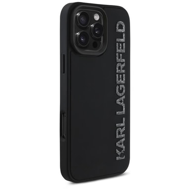 Karl Lagerfeld iPhone 16 Pro Mobilskal 3D Rubber Elongated Glitter - Svart