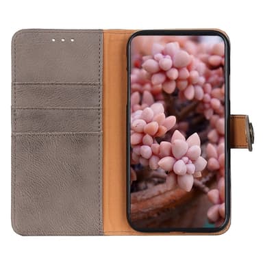 KHAZNEH För iPhone 15 Pro Max Telefonfodral Kohud Texture Skyddande Mobiltelefon Fodral Plånboksställ - Khaki