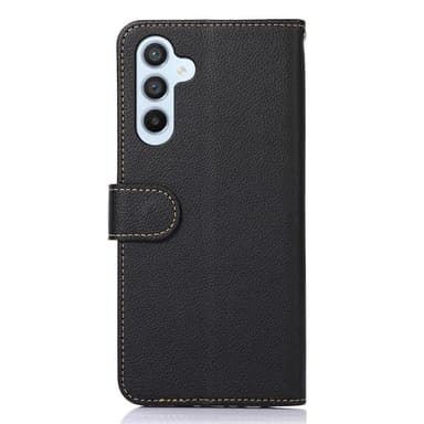 KHAZNEH Litchi Texture telefonfodral för Samsung Galaxy A34 5G, PU-läder + TPU RFID-blockerande droppsäkert mobiltelefonfodral med stativplånbok - svart