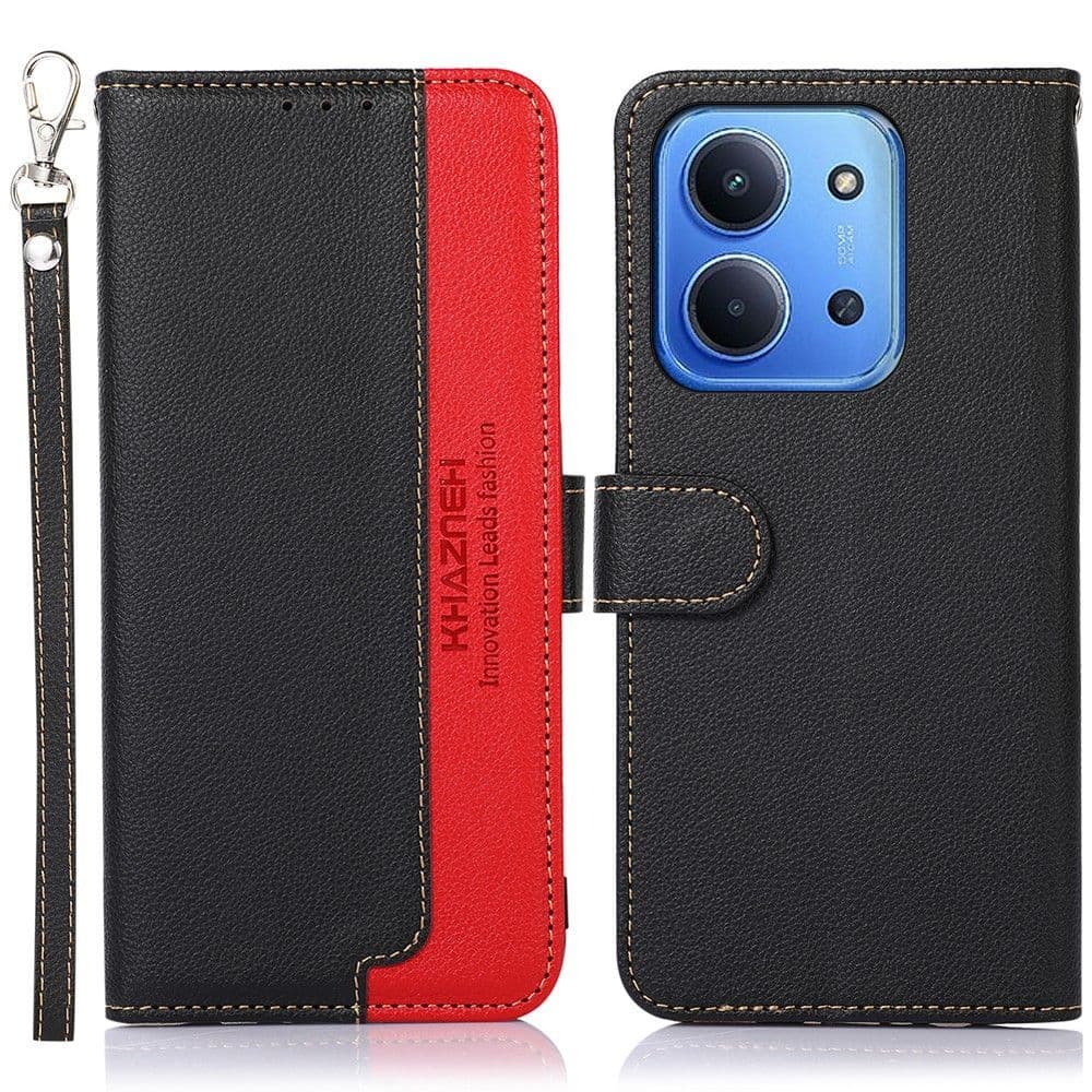 KHAZNEH För Xiaomi Redmi 15C Fodral RFID-blockerande telefonläderfodral - Svart-Röd