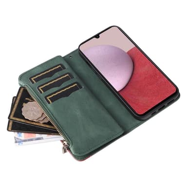 Plånboksfodral till Samsung Galaxy A14 med 8 kortplatser och myntfack med dragkedja.