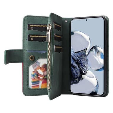 Plånboksfodral till Xiaomi 12T / 12T Pro med 8 kortplatser och myntfack med dragkedja.