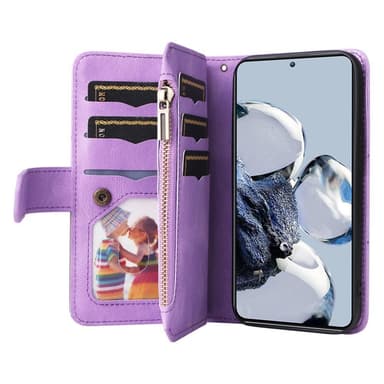 Plånboksfodral till Xiaomi 12T / 12T Pro med 8 kortplatser och myntfack med dragkedja.