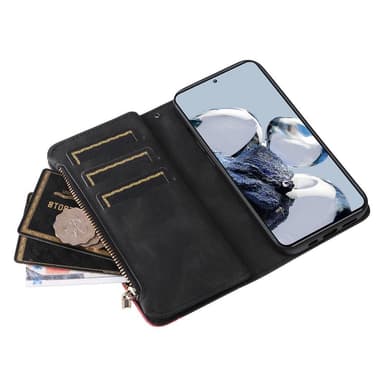 Plånboksfodral till Xiaomi 12T / 12T Pro med 8 kortplatser och myntfack med dragkedja.