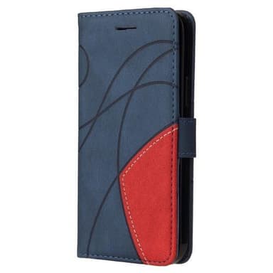 • Tillverkad av PU-läder och TPU-material, skydd i två lager Fashionabla tvåfärgade skarvningsdesign med oregelbundna linjer Plånboksstil: 2 kortplatser + 1 fotofack + 1 kontantficka