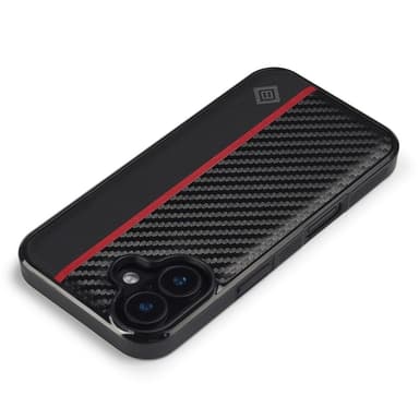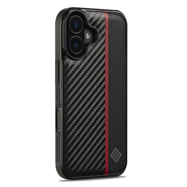 TPU + EVA 2-i-1 hybrid bottendel, hållbar och reptålig. Yta i kolfiberstruktur och PU-läder med fin textur och röd vertikal rand, snyggt utseende. Aluminiumlegeringslogotypen visar den höga kvaliteten.