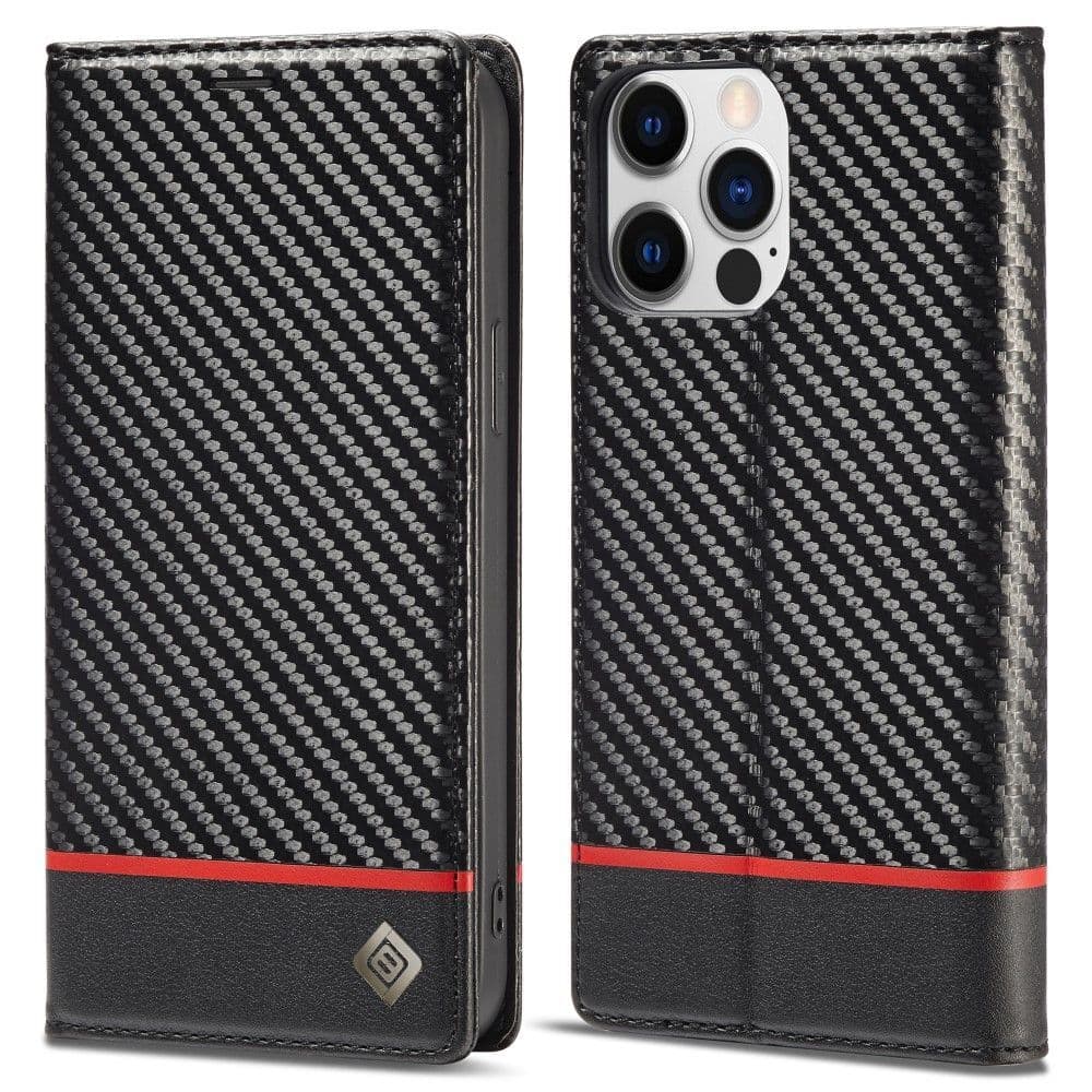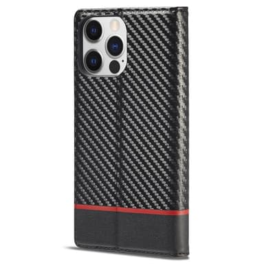 LC.IMEEKE för iPhone 15 Pro Carbon Fiber Texture Telefon Flip Läder plånboksfodral Dropsäkert mobiltelefonskal