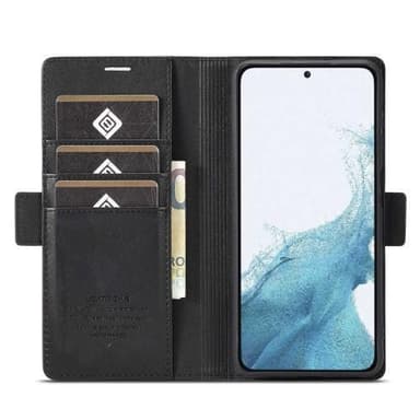 LC.IMEEKE Plånboksfodral för Samsung Galaxy S23, hopfällbart ställ PU-läder, starkt magnetiskt sugskyddsskydd - svart