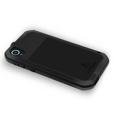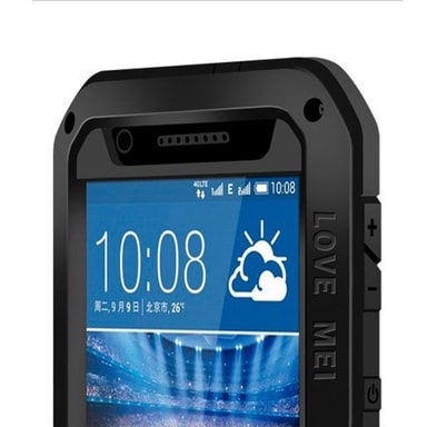 Ett special skal i 3 lager som skruvas ihop, mobilen ligger skyddad i en stöttåligt silikonvagga.