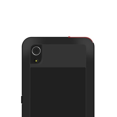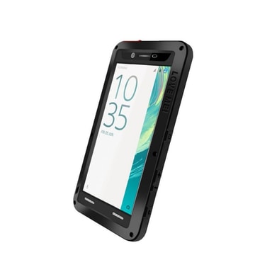 Ett special skal i 3 lager som skruvas ihop, mobilen ligger skyddad i en stöttåligt silikonvagga.