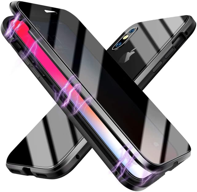 Ett slitstarkt mobilskal kompatibelt med iPhone XS Max. Det monteras enkelt då det har 16 inbyggda starka magneter som gör att skalet smidigt och säkert omsluter telefonen. Skalet har en ram av högkvalitativ metall och både framsidan och baksidan är gjorda av härdat glas, vilket gör att hela din telefon skyddas mot smuts, repor och stötar. Med det här mobilskalet skyddar du även din integritet då du endast ser skärmen framifrån, så nyfikna personer som sitter bredvid kan inte se din skärm.