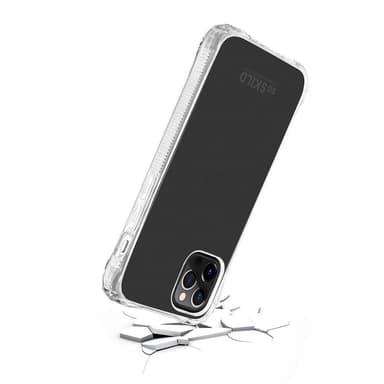 Vi har förbättrat skyddet i hörnen på skalet (när en telefon tappas, är det troligt att den träffar marken först med ett av hörnen). Vi gjorde detta genom att ta fram ett 4-sidigt skydd som skapar en pyramidformad ficka i hörnen på skalet. Triangelstrukturen från en pyramid är välkänd från strukturer byggda genom historien (Eiffeltornet, Pyramiderna i Giza och många fler).