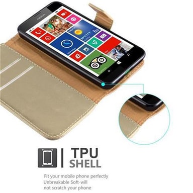 DESIGN: Fodral i bokstil för Nokia Lumia 630 / 635 i konstläder har två kortplatser, en sidoficka och en horisontell ståfunktion som gör det enkelt att förvandla fodralet till en skärm.