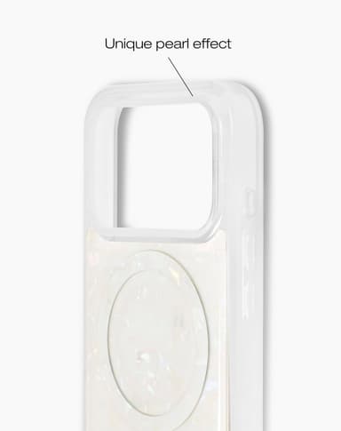 Höj din telefon med lyxen av ett pärlemorsskimrande skal. Denna design framhäver den unika glansen hos en imiterad pärla samtidigt som det ger ett extra skyddsskikt för din enhet.Läs mer om produkten