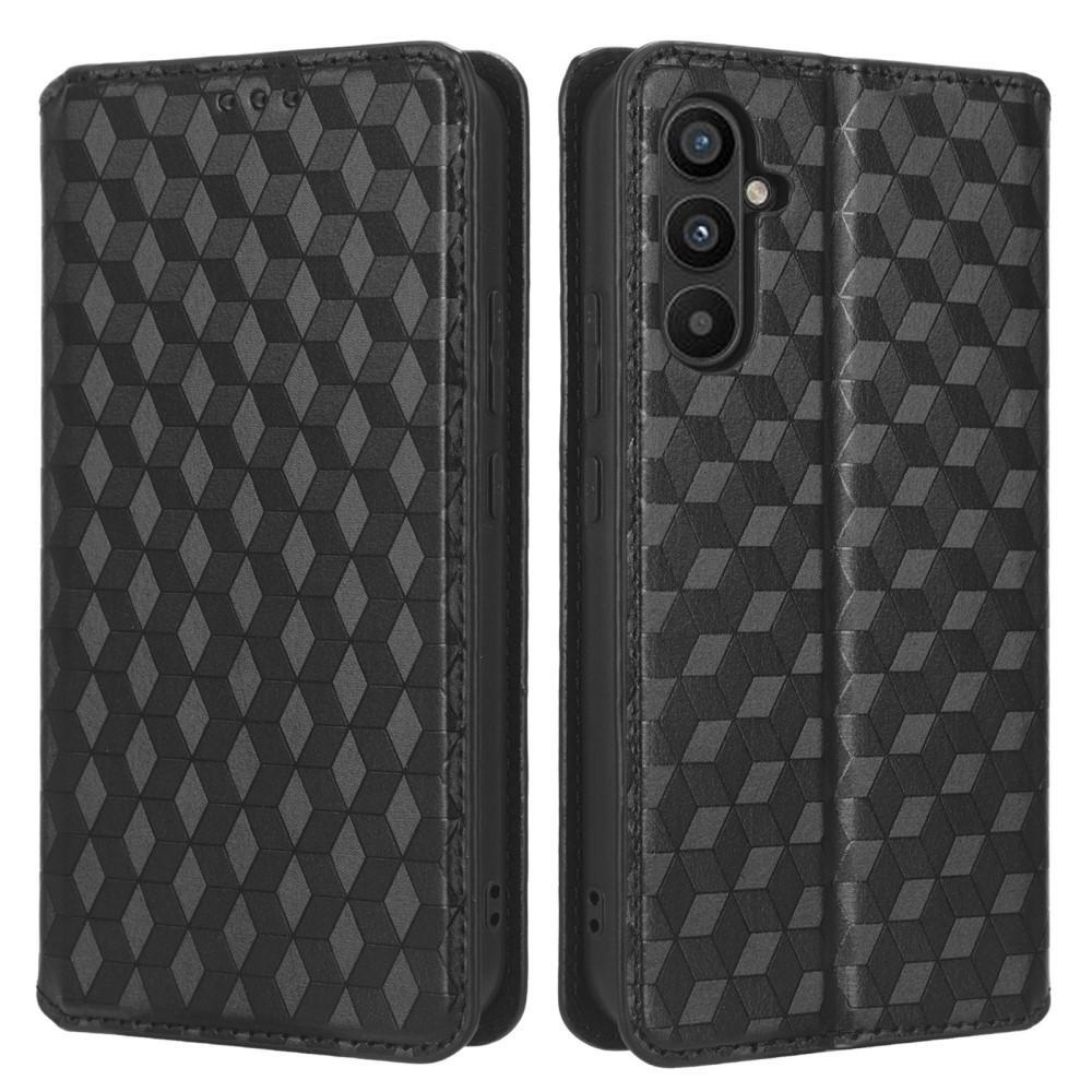 För Samsung Galaxy A34 5G tryckt Rhombus läderfodral Plånboksställ Magnetiskt automatiskt stängande telefonskyddsfodral - svart