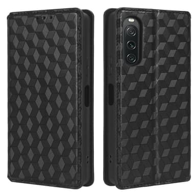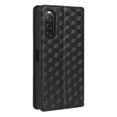 För Sony Xperia 10 V tryckt Rhombus läderfodral Plånboksställ Magnetiskt automatiskt stängande telefonskyddsfodral - svart