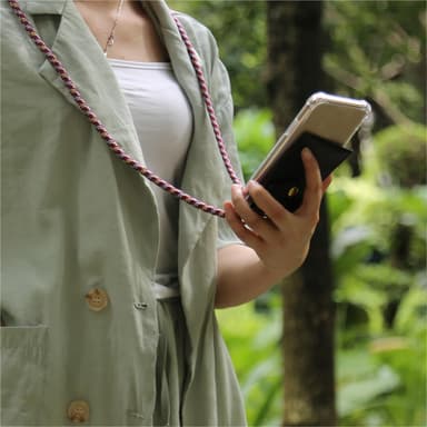 SKYDD: TPU-silikonfodralet skyddar mobilens kanter och hörn. De högkvalitativa karbinhakarna håller telefonen väl fast på det rivningsbeständiga repet. Fodralet är robust och hålls på plats med tryckknappar.