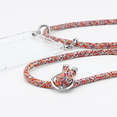 SKYDD: TPU-silikonfodralet skyddar mobilens kanter och hörn. De högkvalitativa karbinhakarna håller telefonen väl fast på det rivningsbeständiga repet. Fodralet är robust och hålls på plats med tryckknappar.