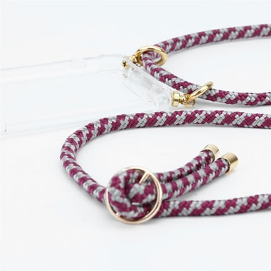 SKYDD: TPU-silikonfodralet skyddar mobilens kanter och hörn. De högkvalitativa karbinhakarna håller telefonen väl fast på det rivningsbeständiga repet. Fodralet är robust och hålls på plats med tryckknappar.