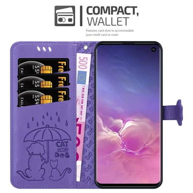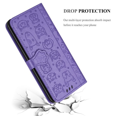 DESIGN: Fodralet i konstläder i söt design har kortplatser och en ficka för kontanter. Med stativfunktionen kan du placera telefonen bekvämt för att titta på filmer eller videokonferenser.