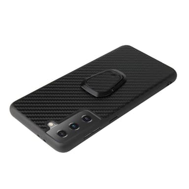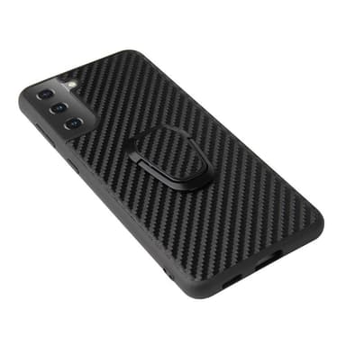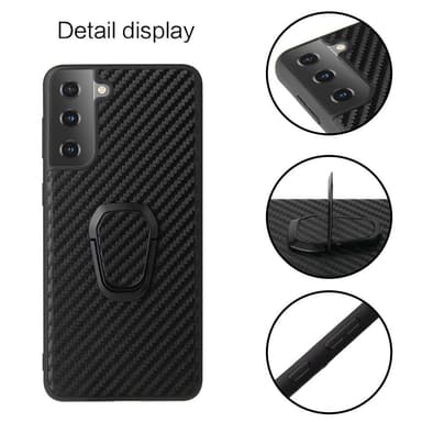 Telefonskal Skal belagd med PU -läder + ringformad stativdesign för Samsung Galaxy S21 Plus 5G - kolfiberstruktur