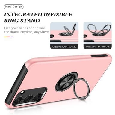 Hybridtelefonfodral heltäckande med ringformad kickstandsdesign för Samsung Galaxy S23 - Rose Gold