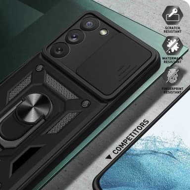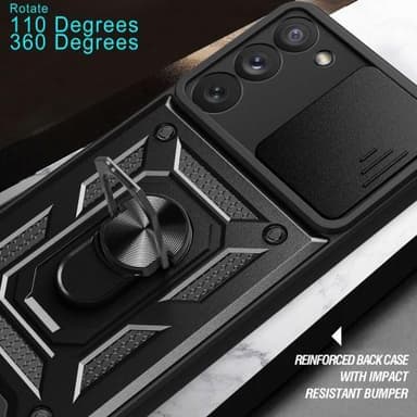 För Samsung Galaxy S23+ (Plus) metallringhållare Kickstand Skyddstelefonskydd PC + TPU Anti-droppfodral - Svart