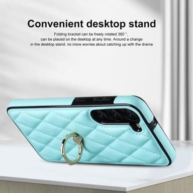 För Samsung Galaxy S23 telefonfodral PU-läder + TPU-tryckt Rhombus Grid Mönster Bakstycke med Ring Stativ - Sky Blue