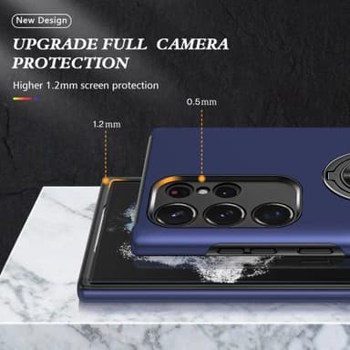 Hybridtelefonfodral heltäckande med ringformad kickstandsdesign för Samsung Galaxy S23 Ultra - Blå