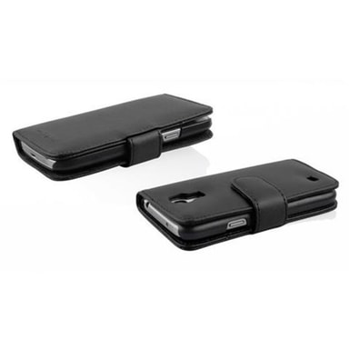 DESIGN: Faux läderfodral i bokstil med integrerat fodral som ger perfekt stöd för din mobiltelefon. Luckan kan fällas ner 360° och stör därför inte när du pratar eller skriver i telefonen.