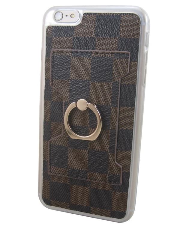 Selfieskal i mjukplast med baksida av rutigt tyg, snyggt och trendigt samt ger ett bra skydd till din telefon.