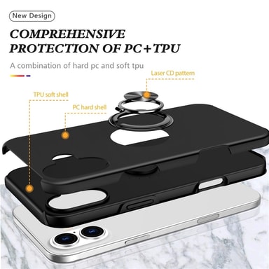 Hybridtelefonfodral heltäckande med ringformad kickstandsdesign kompatibelt med iPhone 17 - Svart