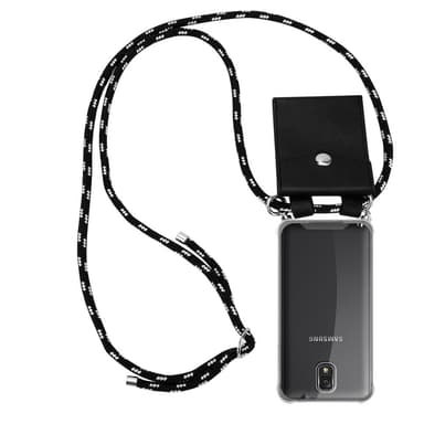 SKYDD: TPU-silikonfodralet skyddar mobilens kanter och hörn. De högkvalitativa karbinhakarna håller telefonen väl fast på det rivningsbeständiga repet. Fodralet är robust och hålls på plats med tryckknappar.