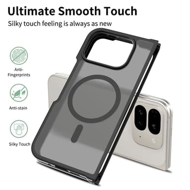 Upplev den silkeslena känslan av Skin-touch Hybrid. Den flexibla TPU-ramen skyddar din telefon mot stötar och repor, medan den slimmade profilen bevarar telefonens eleganta design. Med inbyggda magneter för MagSafe-kompatibilitet och precisa utskärningar för enkel åtkomst till alla funktioner, är detta skal den perfekta kombinationen av stil och funktionalitet.