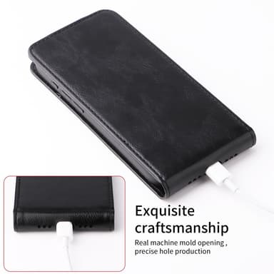Upplev den perfekta kombinationen av skydd och stil med detta vertikala flip-fodral i PU-läder. Den smarta designen öppnas nedåt, så att du enkelt kan hantera din telefon med en hand. Fodralet är tillverkat av hållbart TPU och elegant PU-läder, och det har en inbyggd kortplats för ditt viktigaste kort. Den starka magnetiska stängningen ger extra skydd och enkel användning. Med en mjuk finish och precisa utskärningar ligger fodralet bekvämt i handen och ger full åtkomst till alla knappar och portar. Skydda din telefon mot stötar och repor med detta stilfulla och funktionella fodral.