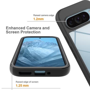 Skyddar din telefon mot oväntade fall. Den tåliga, genomskinliga baksidan av PC och den stötdämpande TPU-bumbern säkerställer långvarigt skydd. Det inbyggda PET-skärmskyddet skyddar skärmen mot repor utan att kompromissa med pekkänsligheten. De förhöjda kanterna (1,2 mm vid kameran och 1,25 mm vid skärmen) ger extra skydd. Den tätslutande tvålagersdesignen med skärmskydd passar perfekt till din telefon. Den förstärkta ramen ger bra stötdämpning.